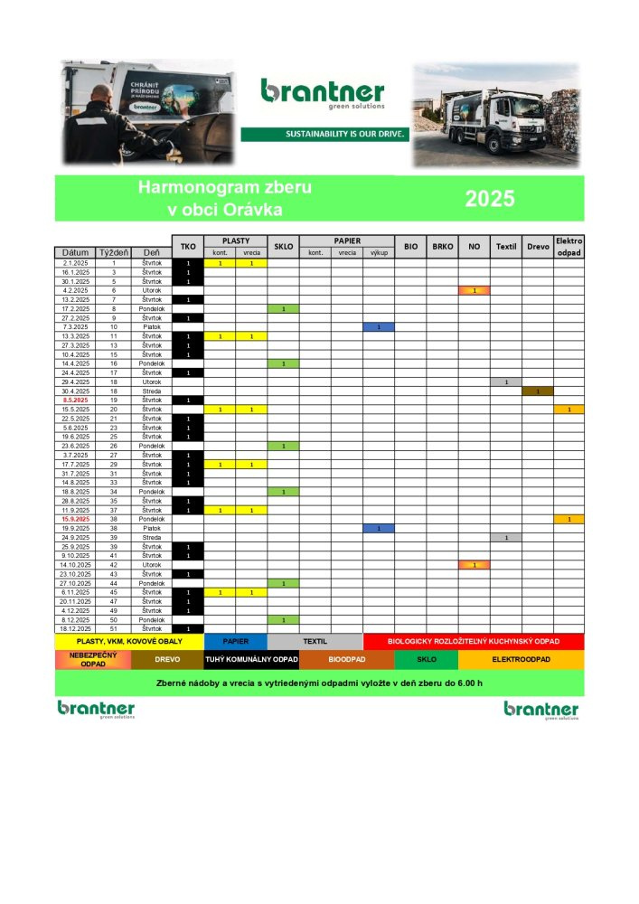 Harmonogram zberu odpadu 2025